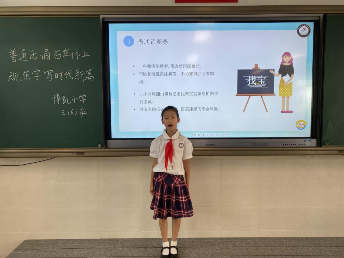 在德育處的組織下,各班精心開展了以“普通話誦百年偉業(yè),規(guī)范字寫時(shí)代新篇”為主題的班隊(duì)會活動,積極宣傳《中華人民共和國國家通用語言文字法》以及相應(yīng)的普通話基礎(chǔ)知識。