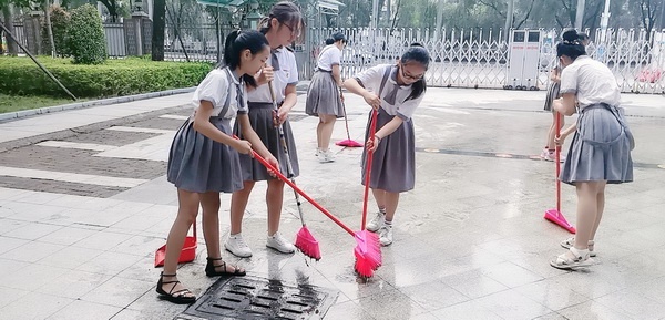 學(xué)校動員多方力量對校園環(huán)境進行了集中治理。每天中午、下午放學(xué)時間,學(xué)校安排黨員教師和部分學(xué)生掃除校園周邊“牛皮癬”,凈化校園周邊衛(wèi)生環(huán)境。