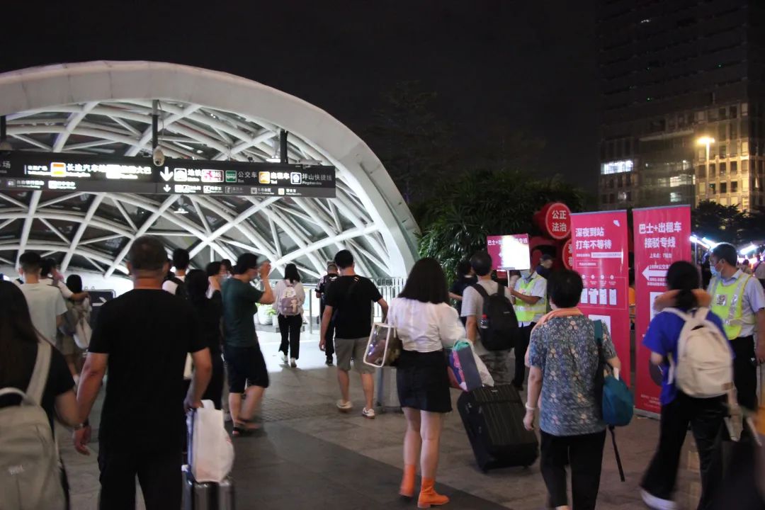10月6日23時(shí)30分,深圳北站首次啟動(dòng)凌晨“公交+出租車(chē)”聯(lián)乘服務(wù),一直持續(xù)到凌晨3點(diǎn)末班高鐵到站。