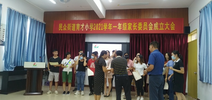 第二個議程:由李紅梅主任解讀育才小學家長委員會管理制度,全體參會人員通過制度。然后宣讀各班家委成員、志愿交通協(xié)管員名單,還以班級為單位頒發(fā)相應的證書,并合影留念。