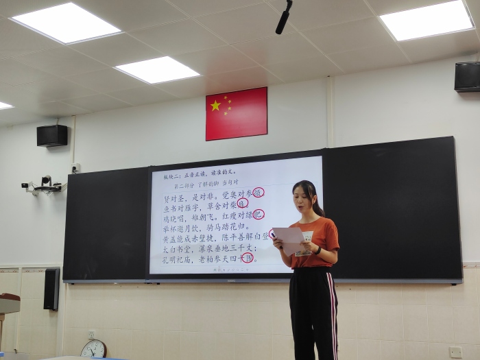 16日,組內(nèi)初賽如期舉行。13節(jié)課,13種風(fēng)格;13位青年教師,13種看家本領(lǐng)。授課內(nèi)容均選自國學(xué)啟蒙、經(jīng)典詩詞等中華優(yōu)秀傳統(tǒng)文化。有的老師運用視頻、圖片等多媒體手段,帶領(lǐng)學(xué)生走進詩詞,感受詩詞的韻味;有的老師深挖文本,由朗讀到吟誦再到配樂吟詠,由淺入深,引導(dǎo)學(xué)生讀中悟,體會詩人的心境;有的老師從實際出發(fā),提舉生活實例,讓學(xué)生在生活中接受傳統(tǒng)文化的熏陶,讓傳統(tǒng)美德如春風(fēng)潤物細無聲般地浸潤孩子的心田。執(zhí)教的老師扎實的課堂基本功、豐厚的文化底蘊以及靈動的課堂設(shè)計讓人印象深刻,課堂效果可謂精彩紛呈。
