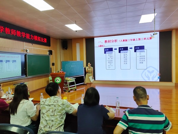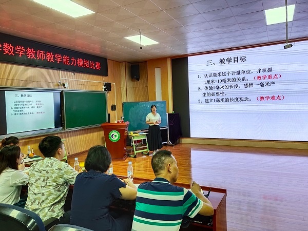 為提升教師數(shù)學專業(yè)水平,夯實教師的教學技能,加強教師教學能力,為中山市小學數(shù)學教學能力大賽做足準備。2021年9月22日,在曹二小學階梯室開展了古鎮(zhèn)鎮(zhèn)小學數(shù)學教師教學能力模擬比賽。古鎮(zhèn)鎮(zhèn)教體中心督學陳和添、鎮(zhèn)中心教研組長許琰主任出席指導本次活動,古鎮(zhèn)各個學校的數(shù)學科組長擔任本次比賽評委,曹二小學全體數(shù)學老師均參與本次活動。