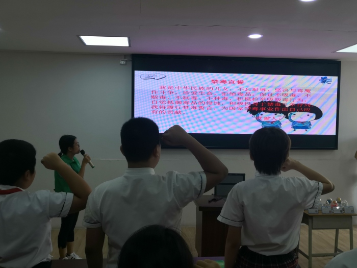 活動(dòng)中,鎮(zhèn)統(tǒng)戰(zhàn)辦向全校250多名少數(shù)民族學(xué)生送上了學(xué)習(xí)用品,向他們送上國(guó)慶節(jié)日祝福,寄語(yǔ)他們?cè)邳S圃這塊有愛(ài)的土地上快樂(lè)茁壯成長(zhǎng),為實(shí)現(xiàn)強(qiáng)國(guó)夢(mèng)貢獻(xiàn)力量!現(xiàn)場(chǎng)的宣傳攤位擺放了民族、禁毒、消費(fèi)維權(quán)及反傳銷(xiāo)的傳單,仿真毒品及民族宣傳的海報(bào),同學(xué)們認(rèn)真聽(tīng)取工作人員的講解,初步掌握了相關(guān)的基礎(chǔ)知識(shí)。為加強(qiáng)教育效果,鎮(zhèn)司法所邀請(qǐng)了瑋德律師事務(wù)所的成世鴻律師開(kāi)展民族宗教政策宣講,成律師以案說(shuō)法,詳細(xì)解讀了有關(guān)民族政策法規(guī)及其實(shí)踐等知識(shí),讓少數(shù)民族學(xué)生增強(qiáng)民族意識(shí),充分認(rèn)識(shí)自己應(yīng)享受的權(quán)利和義務(wù)。由黃圃市場(chǎng)監(jiān)管分局的工作人員進(jìn)行反傳銷(xiāo)、消費(fèi)維權(quán)知識(shí)有獎(jiǎng)問(wèn)答游戲,現(xiàn)場(chǎng)氣氛活躍,同學(xué)們互動(dòng)中學(xué)習(xí)了傳銷(xiāo)的概念、特點(diǎn)與危害及其預(yù)防方法,在日常消費(fèi)中維權(quán)的途徑等,引導(dǎo)同學(xué)們要當(dāng)好“宣傳員”,回家向家長(zhǎng)宣傳好“反傳銷(xiāo)”及消費(fèi)維權(quán)的知識(shí),切實(shí)維護(hù)好自身權(quán)益。為防止新型毒品的濫用,鎮(zhèn)禁毒辦社工通過(guò)課件,圖文并茂,向六年級(jí)的全體學(xué)生深入淺出地普及了“上頭電子煙”、咔哇潮飲、神仙水等新型毒品特點(diǎn)及危害,毒販誘騙青少年吸毒的常用套路和拒毒“防身術(shù)”。同學(xué)們還進(jìn)行禁毒宣誓,成為一名禁毒小衛(wèi)士,用實(shí)際行動(dòng)投入禁毒斗爭(zhēng)行列。鎮(zhèn)防范辦工作人員通過(guò)發(fā)放反邪宣傳資料、參觀(guān)反邪宣傳展板等形式,結(jié)合真實(shí)案例,從邪教的種類(lèi)、邪教的特征、如何防范和抵御邪教三方面向廣大師生重點(diǎn)講解什么是邪教、邪教與宗教的區(qū)別、邪教的危害以及相關(guān)法律法規(guī)知識(shí),教導(dǎo)他們要從小樹(shù)立“崇尚科學(xué) 反對(duì)邪教”的觀(guān)念。