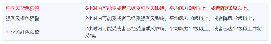 目前已生效的強(qiáng)季風(fēng)藍(lán)色預(yù)警表示的是:
