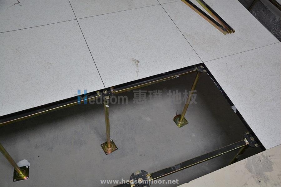 硫酸鈣板防靜電HPL地板用圓頭支架支撐,橫梁和支架上部都有PVC墊片,有效降低噪音。地板的完成面可以從100mm到2000mm